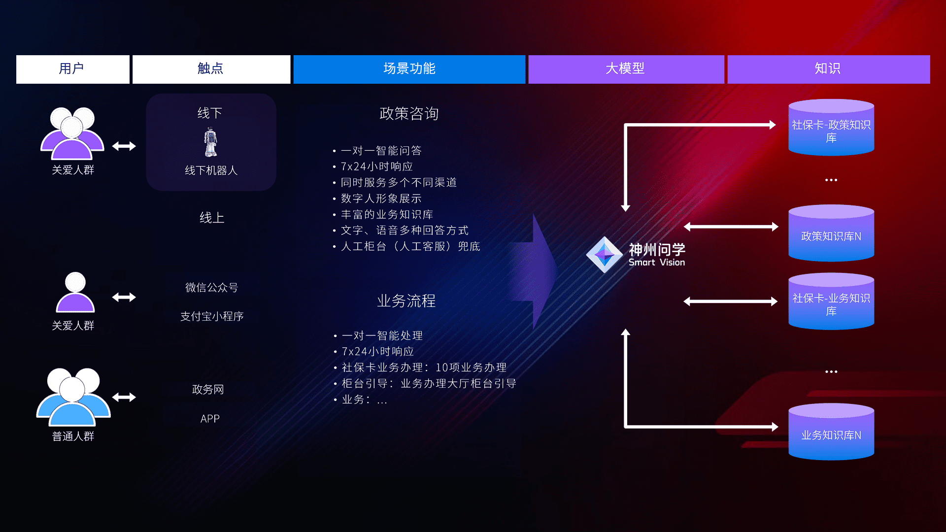 • 线上线下全覆盖:线上提供微信公众号、、、、支付宝小程序、、、政务网、、、app多种渠道,,,与线下机器人形成完整服务体系。。。